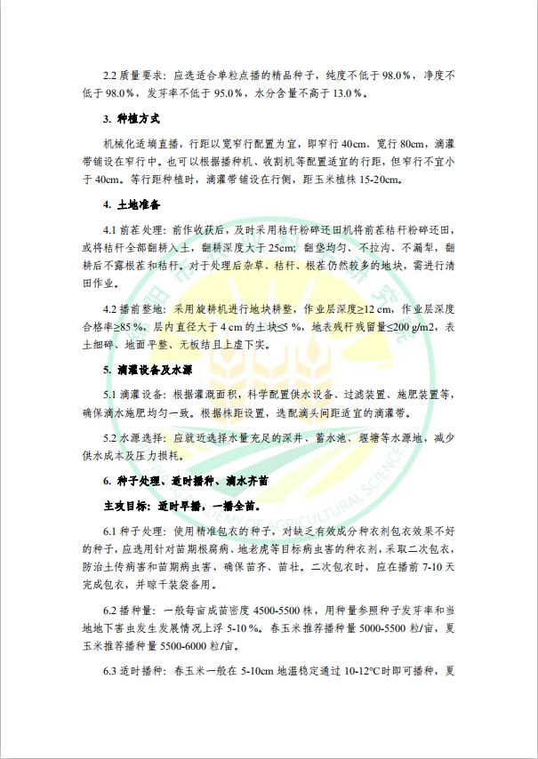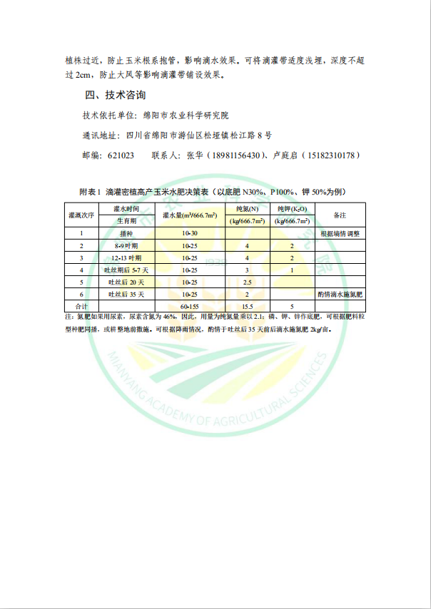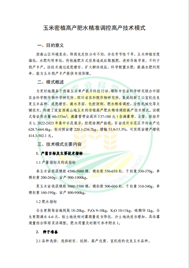 玉米密植高产肥水精准调控高产技术模式