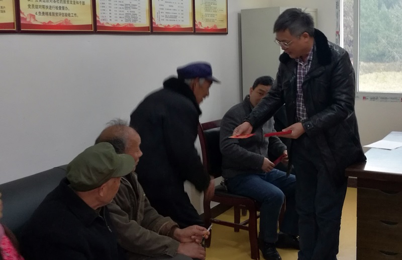 1月26日,正值2017春节来临之际,我院党委书记刘宗勇、副院长赵雄伟和技术服务科工作人员一行,来到我院对接共建的贫困村盐亭县金安乡高峰村,看望慰问贫困农户,与他们进行亲切的问候交谈并向他们发放春节慰问红包。高峰村特困户对我院给予他们的关心和支持表示了衷心的感谢,我院慰问组也表示将进一步加大对盐亭县金安乡高峰村的农业技术支持和关怀,助力高峰村早日脱贫。